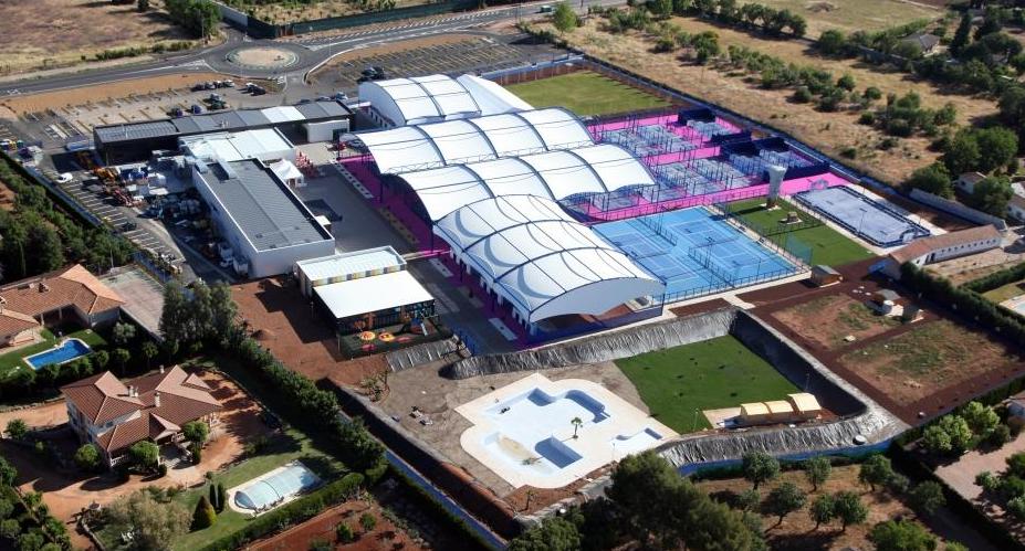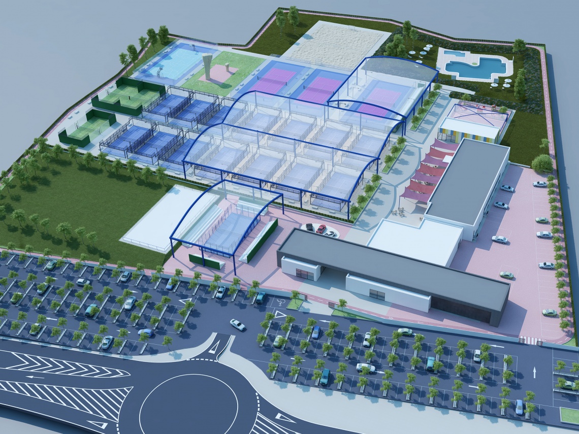 En este ambicioso proyecto de potente escenografía, cuyas construcciones responden fundamentalmente a las necesidades deportivas y de ocio pensadas para toda la familia, cuenta en el exterior con pistas de pádel y tenis, gran parte de ellas cubiertas, pista multideportiva, pista de fútbol playa, rokódromo y pista de patinaje.