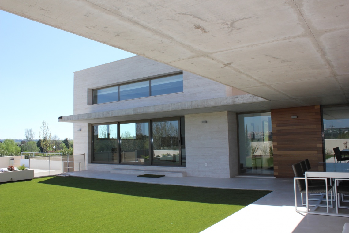 Líneas rectas y un juego de volúmenes definen esta vivienda construida en el norte de Madrid.